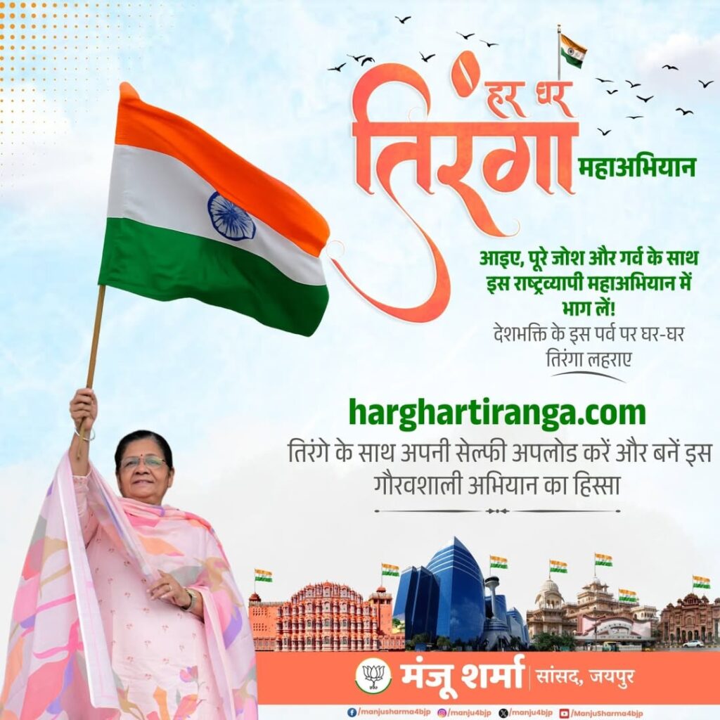 आइए, देशभक्ति के इस पर्व पर घर-घर तिरंगा लहराएं और पूरे जोश व गर्व के साथ इस राष्ट्रव्यापी महाअभियान में भाग लें। तिरंगे के साथ अपनी सेल्फी harghartiranga.com पर अपलोड करें और इस गौरवशाली अभियान का हिस्सा बनें।